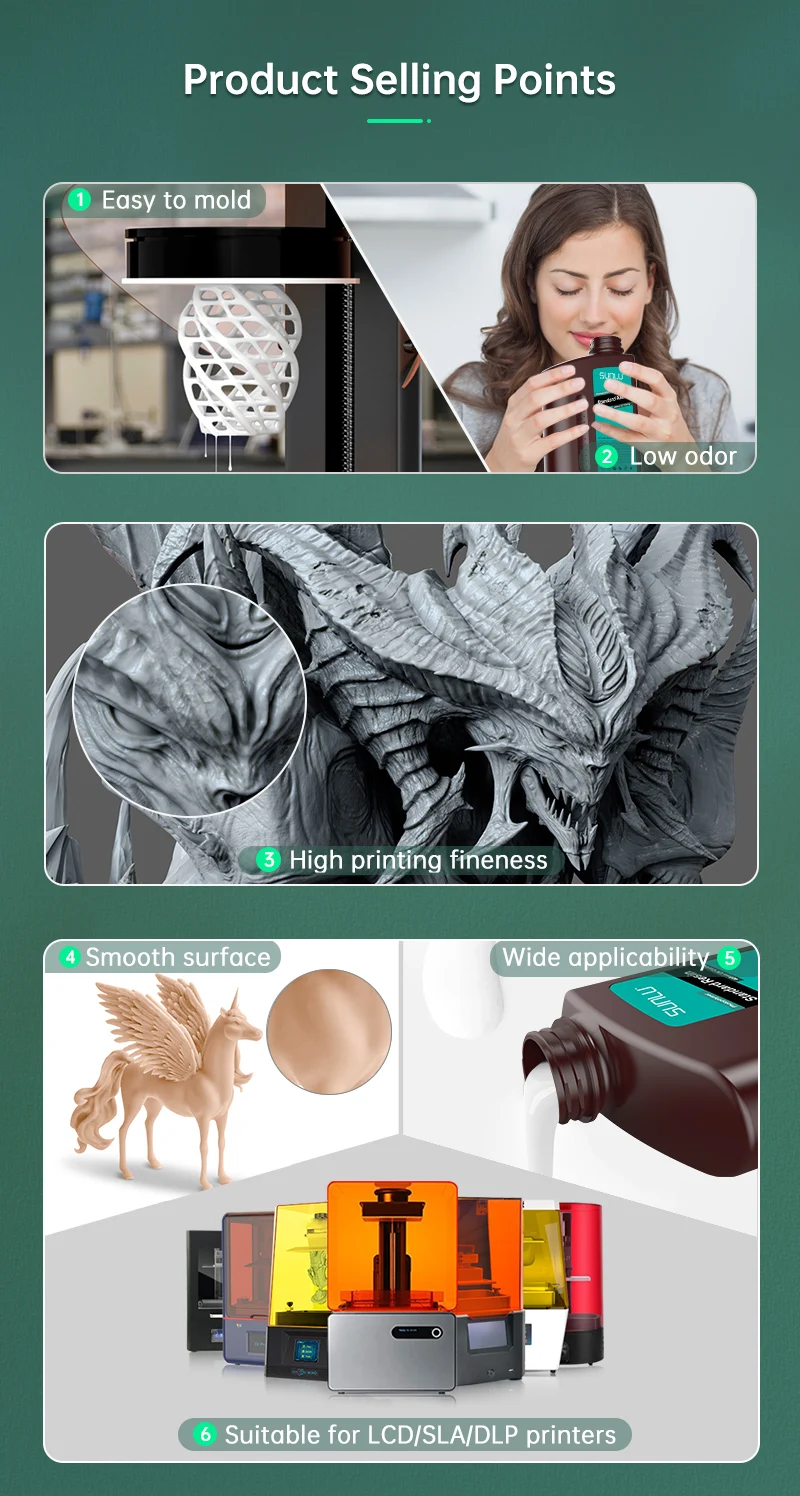 Resina SUNLU tipo ABS adequada para a maioria das impressoras 3D de resina.Adequado para impressora LCD/SLA/DLP