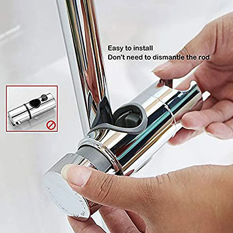 O conjunto do tipo deslizante deste suporte de cabeça de chuveiro facilita a fixação no trilho do chuveiro ou tubo de água sem usar uma chave inglesa ou chave de fenda.