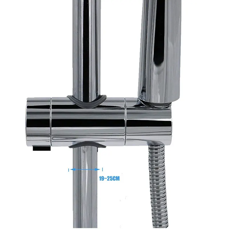Apertando o botão, deslize para cima e para baixo quando necessário. A manga é adequado para diâmetro 25mm chuveiro haste ou levantador.