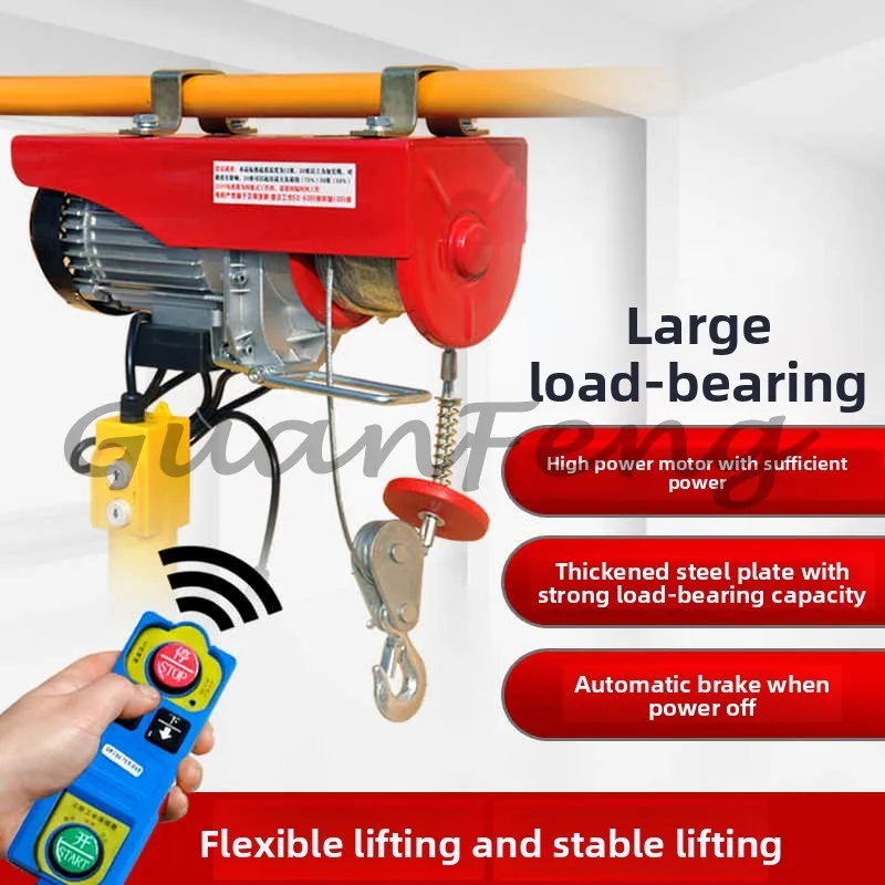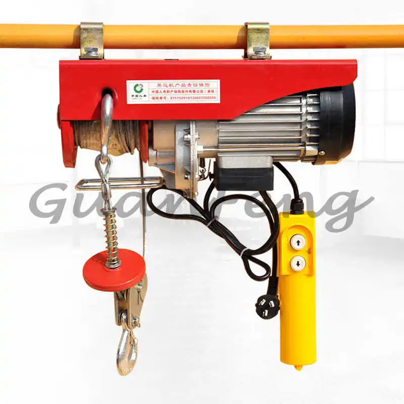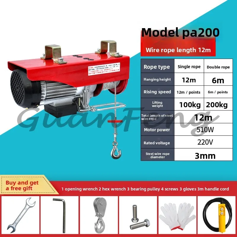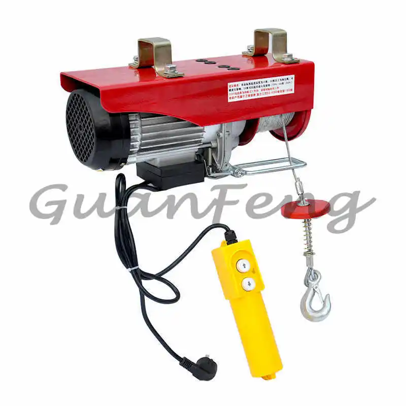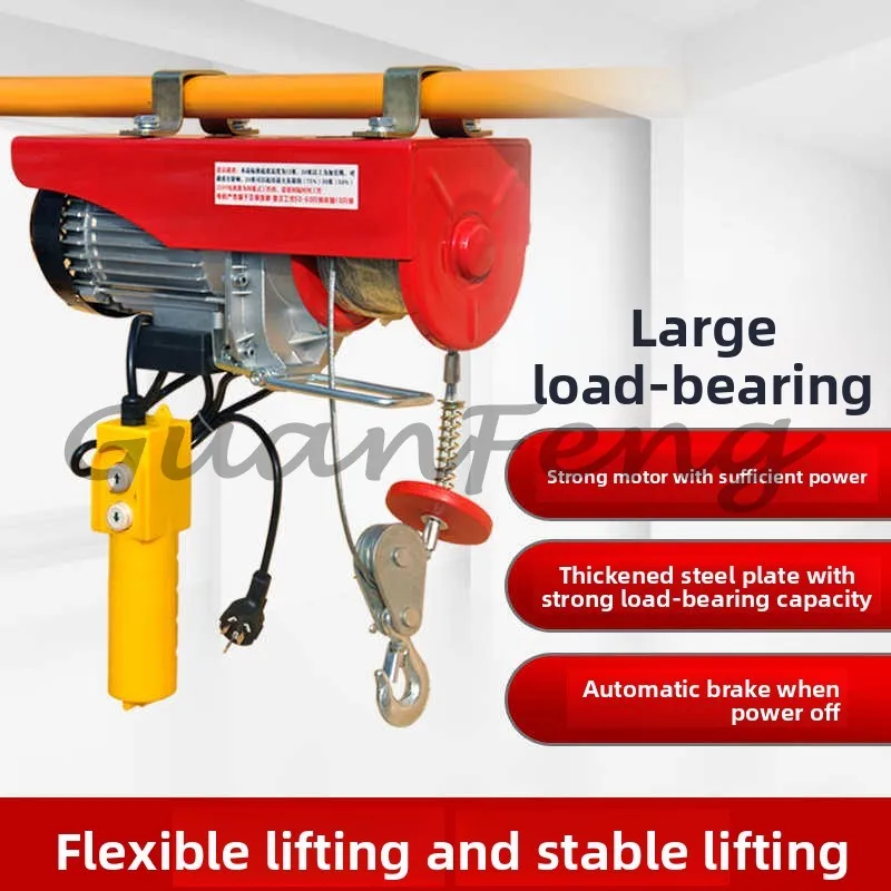 Talha elétrica de cabo de fio, guindaste de guincho doméstico pequeno, talha pequena de gancho, elevador