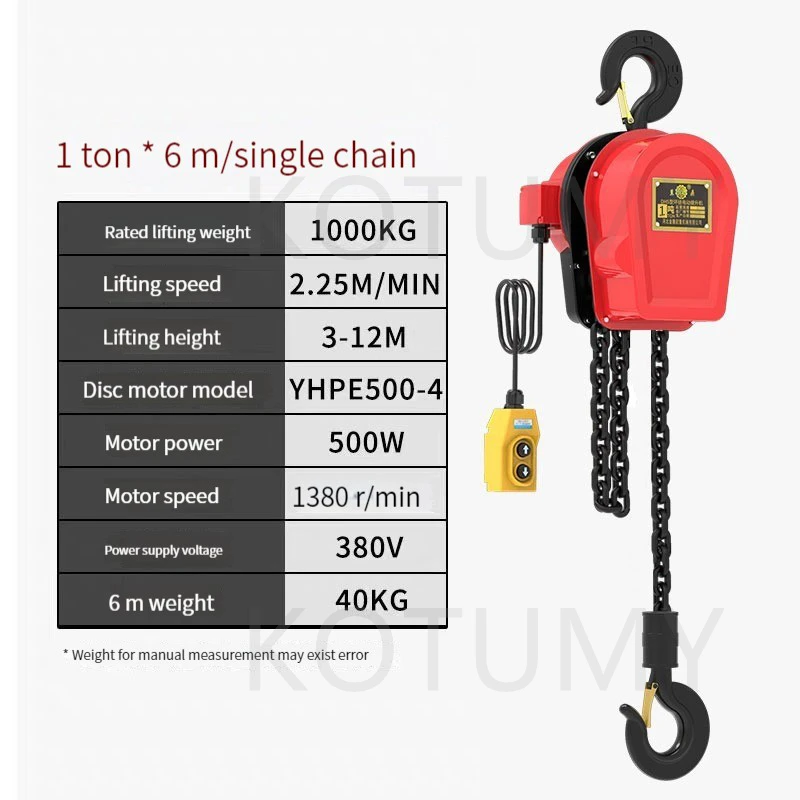 Velocidade de elevação: 2,25M/MIN Altura de elevação: 3-12M Modelo de motor de disco: YHPE004 Potência do motor: 500W Velocidade do motor: 1380 rpm Tensão de alimentação: 380v 6m Peso: 40KG