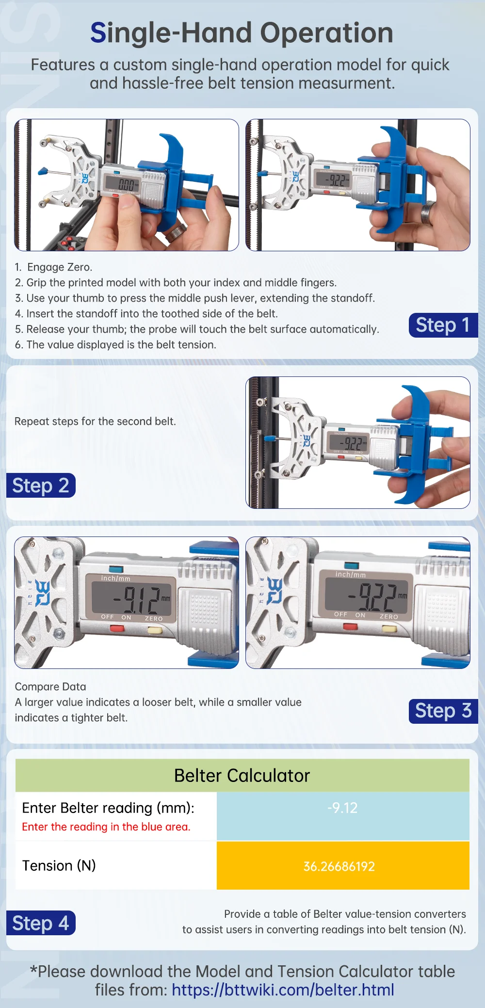 Tensiômetro elástico de cinto btt, medidor de tensão de correia síncrona precisa, medição de detecção para impressoras 3d voron vzbot