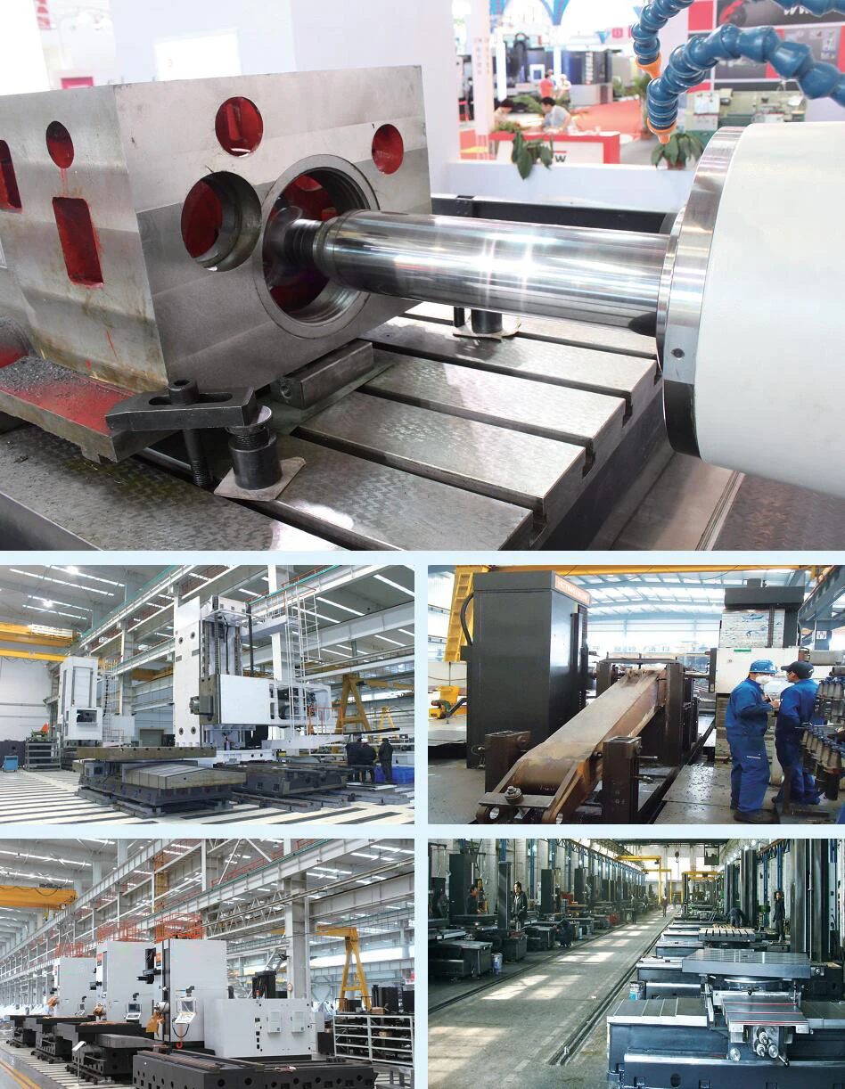 1. This machine equipped with a single column, side hung box, four-point positioning worktable, manual rotation (optional Hirth CNC turret 360x1 °indexing). 2. X, Y, Z axis controlled by CNC system, could realize simultaneous motion. 3. Boring axis’ flexible and axis of facing head are controlled by servo motor, can realize automatic processing 4. X, Y, Z axis with rectangular sliding guide .Teflon plastic paste process, shock absorption, and high precision 5. The spindle box with counterweight balance, spindle and axis of facing head are controlled by AC servo motor.