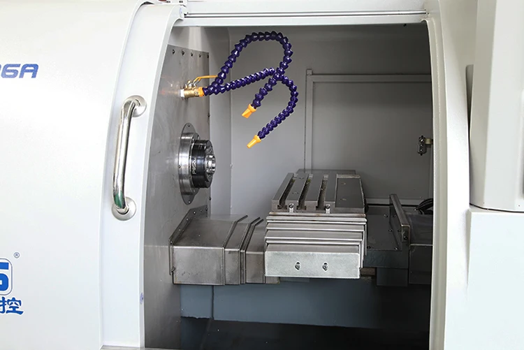 Torreta elétrica, torre servo, torre elétrica, potência do fuso atualizada, torque do fuso atualizado, diâmetro interno do cilindro e do mandril atualizado, tanque de resfriamento tipo gaveta, sonda de ferramenta, removedor de névoa de óleo, etc.para os clientes escolherem.