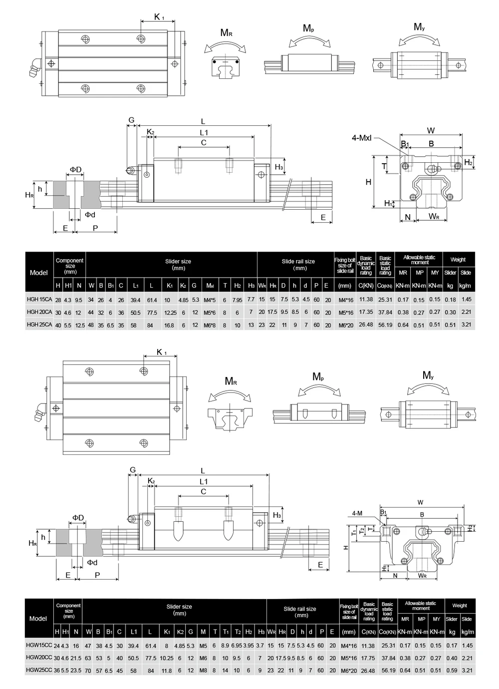 Trilhos lineares enviados no Brasil HGR20 2 unidades + 4 unidades HGH20CA rolamentos blocos lineares para roteador CNC