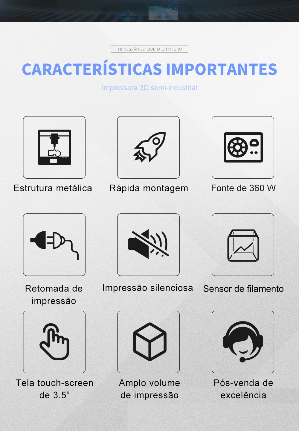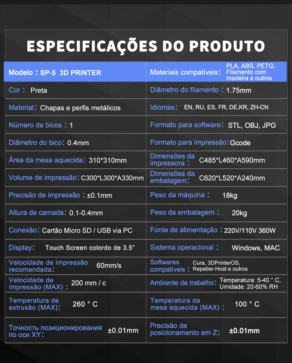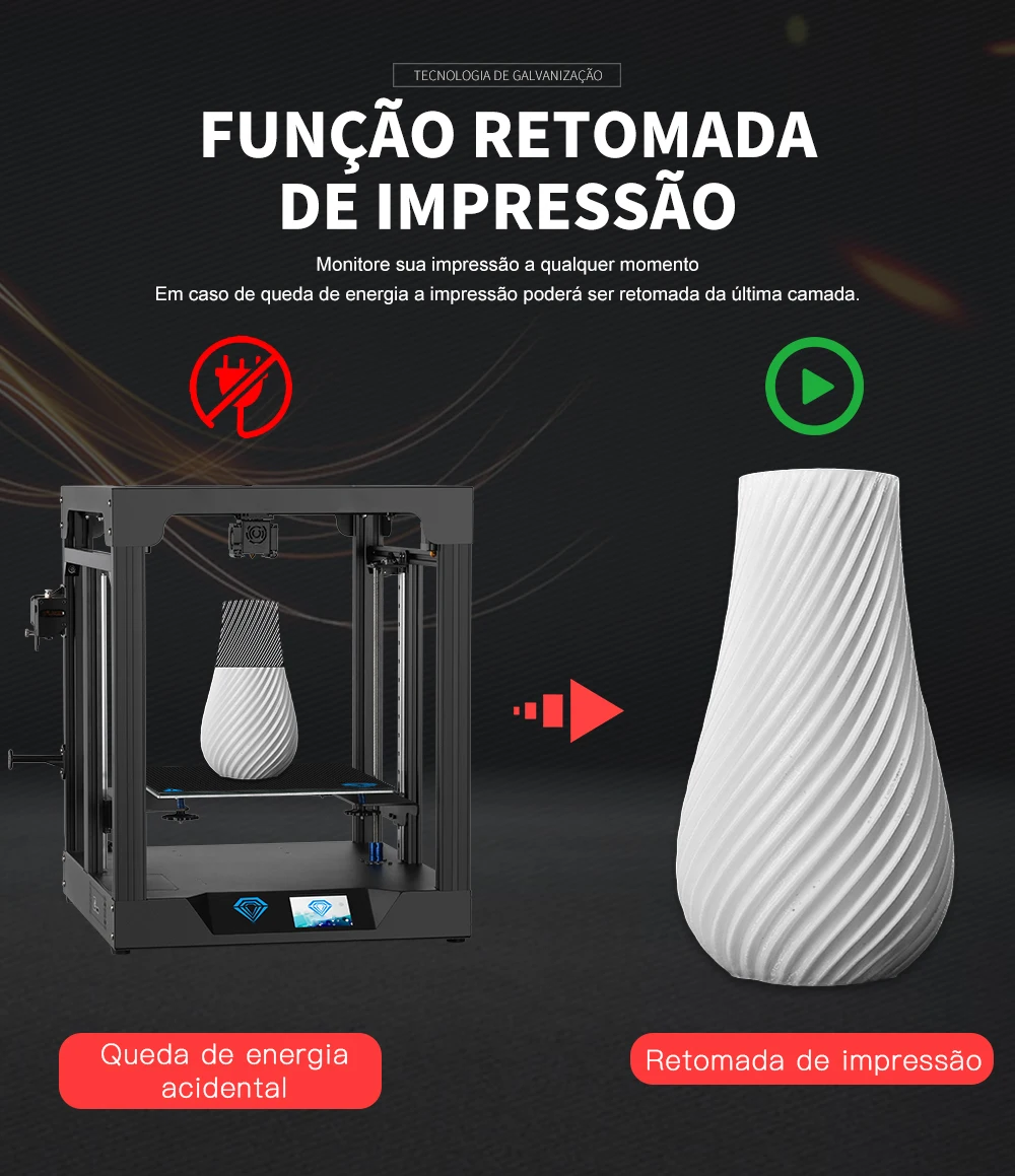 - Velocidade máxima de impressão: 300mm/s