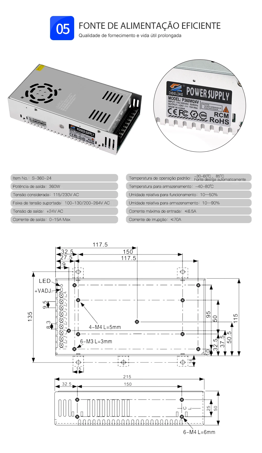 - Fonte de alimentação: 24V 360W