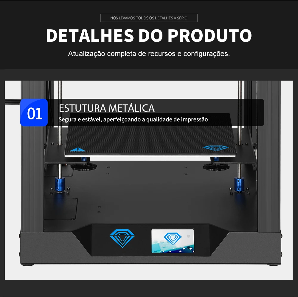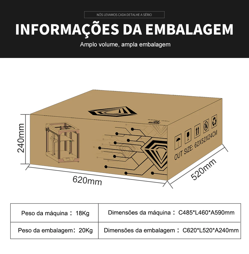 Sobre a embalagem: embalagem modular, todas as peças de impressora 3d estão na caixa, design de embalagem científica, cada parte cuidadosamente protegida para garantir a chegada segura.