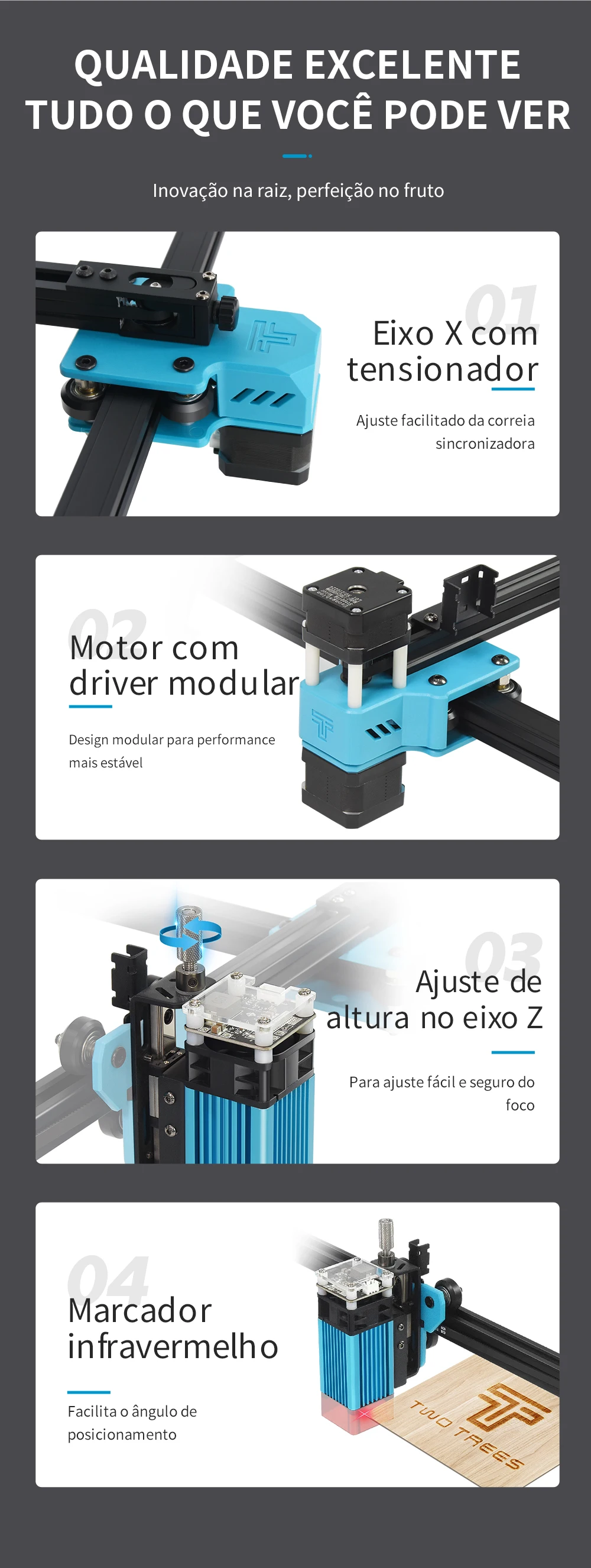 [Módulo de acionamento integrado do motor] design modular, desempenho mais estável, e os três motoristas do motor deslizante podem fornecer velocidade movente mais rápida, completando a gravura da eficiência elevada.