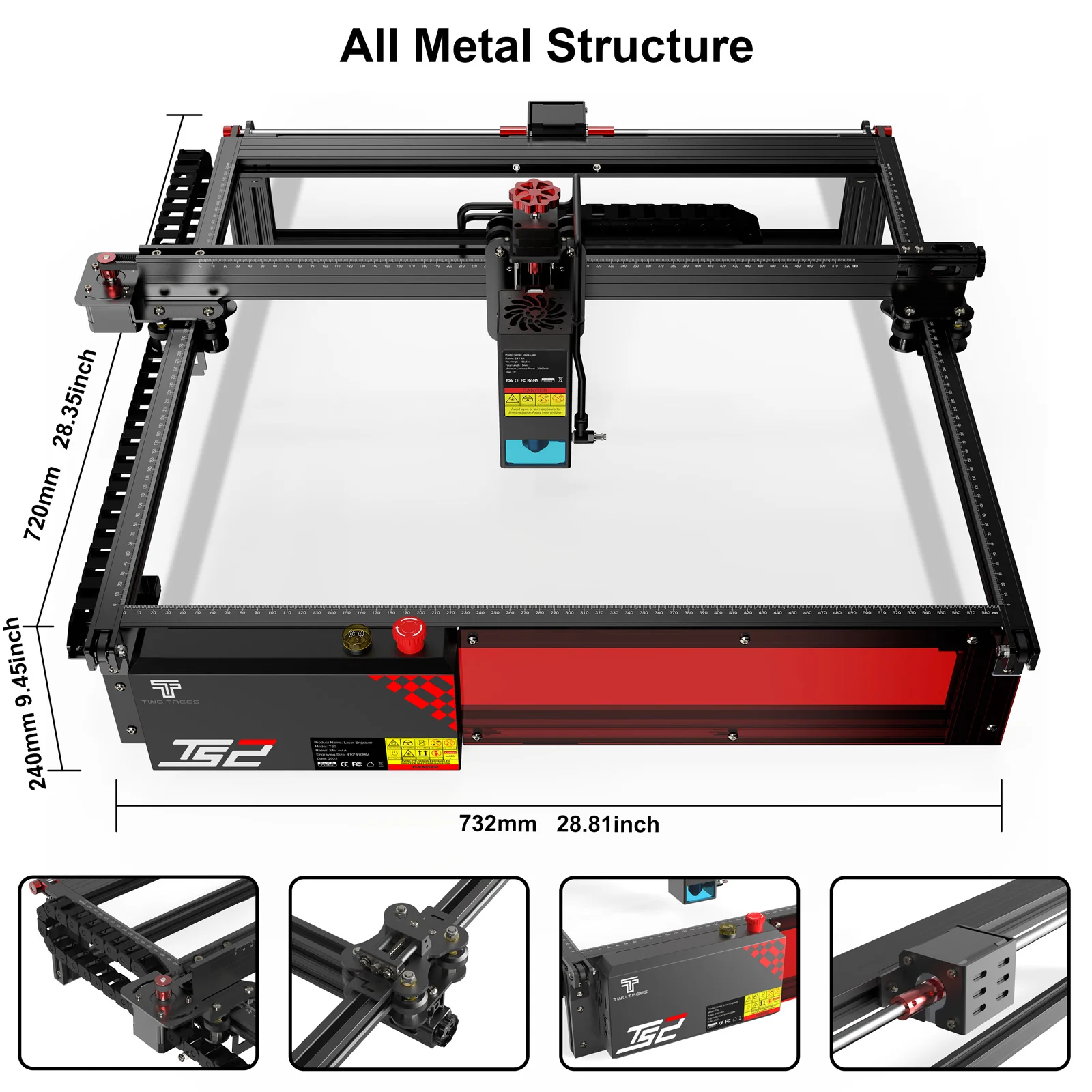 TWOTREES TS2 160W CNC Laser Engraver Gravura Máquina de corte Embutido Air Assist App Control Suporte Offline Print 410*410mm