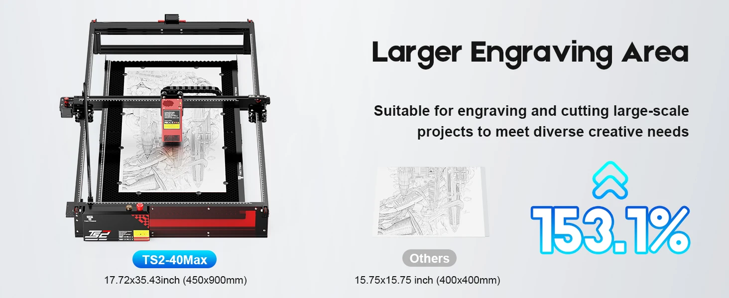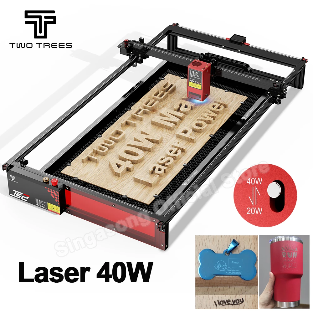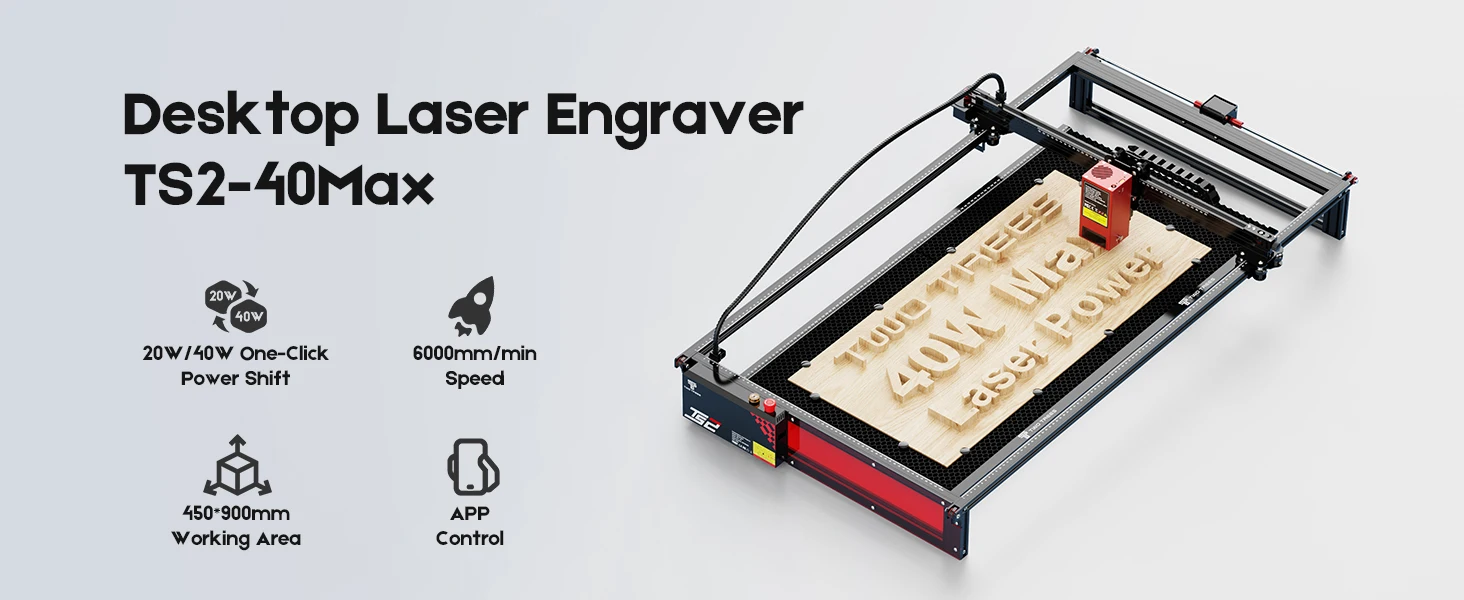 Twotrees TS2-40W MAX Gravador a laser CNC Máquina de gravação a laser de metal Cortador a laser Couro Madeira Acrílico Suporte Controle offline