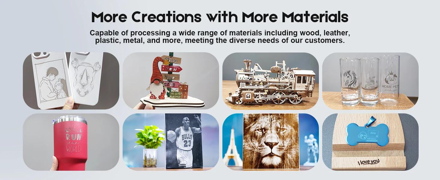 Materiais de gravação: Madeira, Plástico, Papel, Couro, Bambu, Aço Inoxidável, Chevron, Acrílico, Vidro, etc.