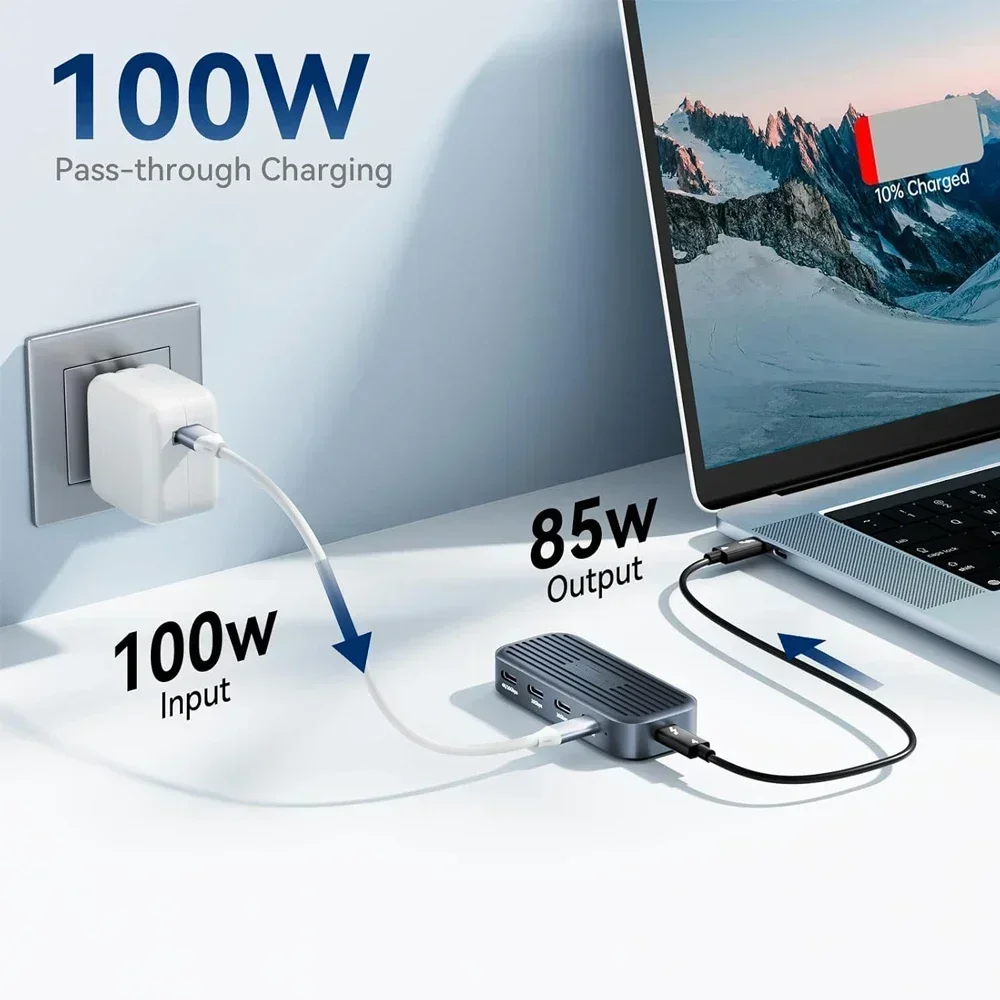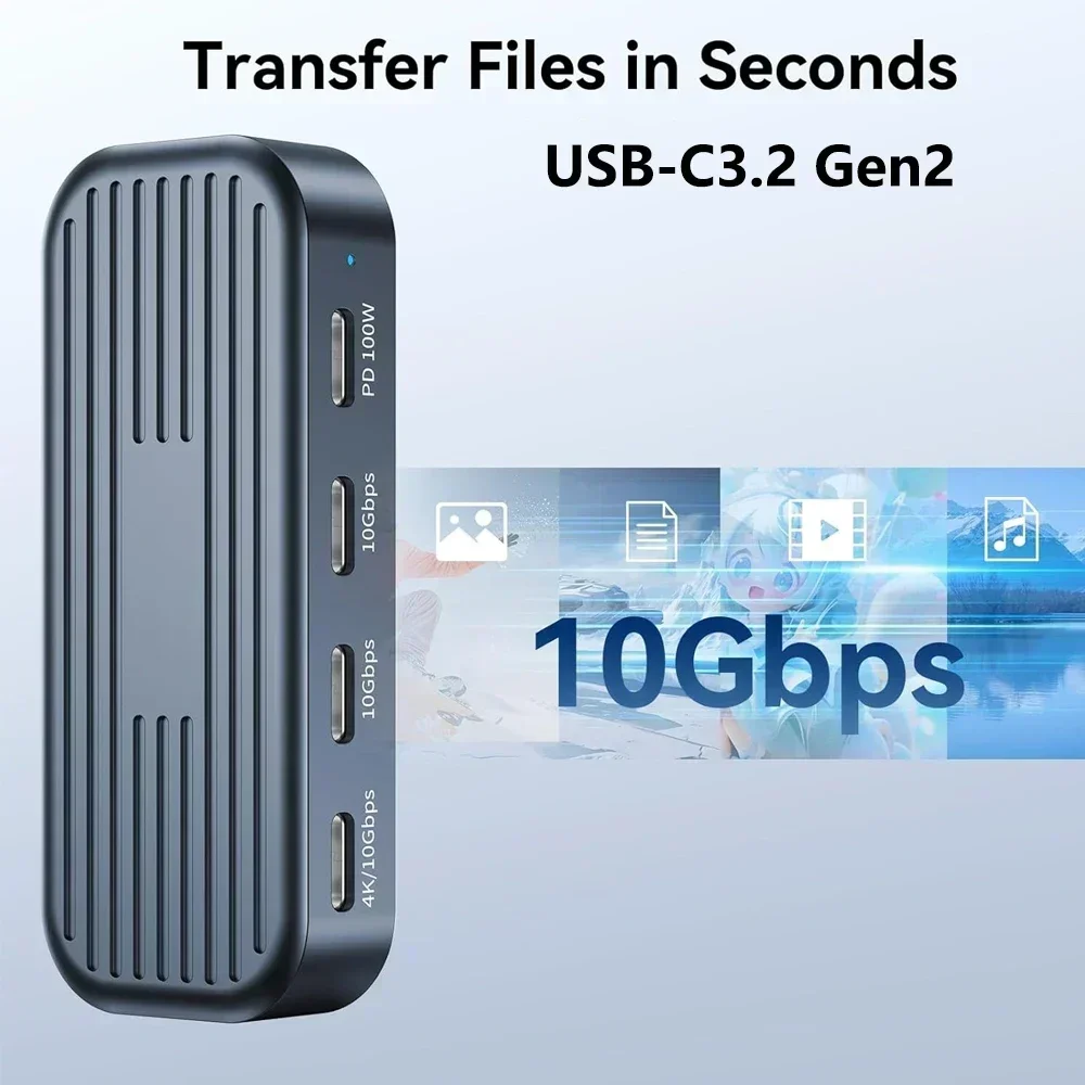 USB3.2 Gen2 USB C Hub with Display Port 4K@60Hz Video Output PD100W USB Splitter for Laptops MacBook Air IPad Pro Type-C Devices
