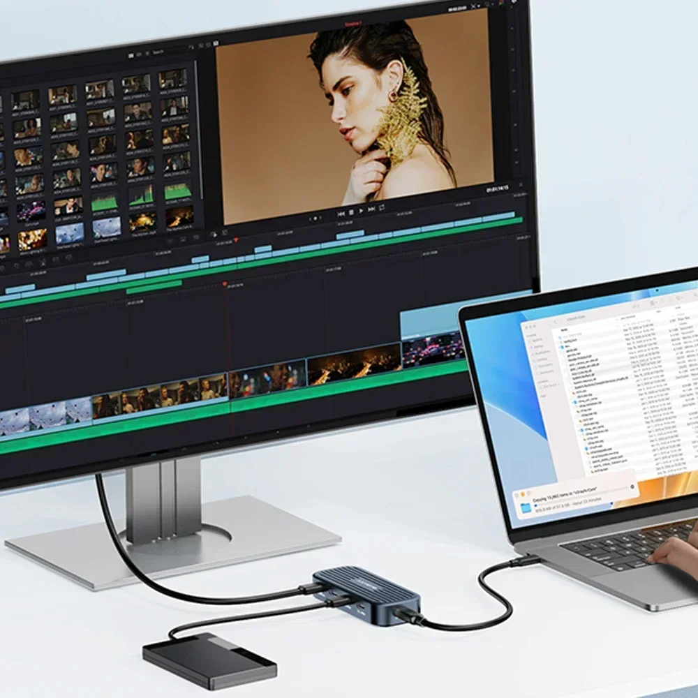 4 in 1: 1*PD100 charging port, 2*USB-C 10Gbps data transfer, 1*full function port (support video/audio/data transfer)