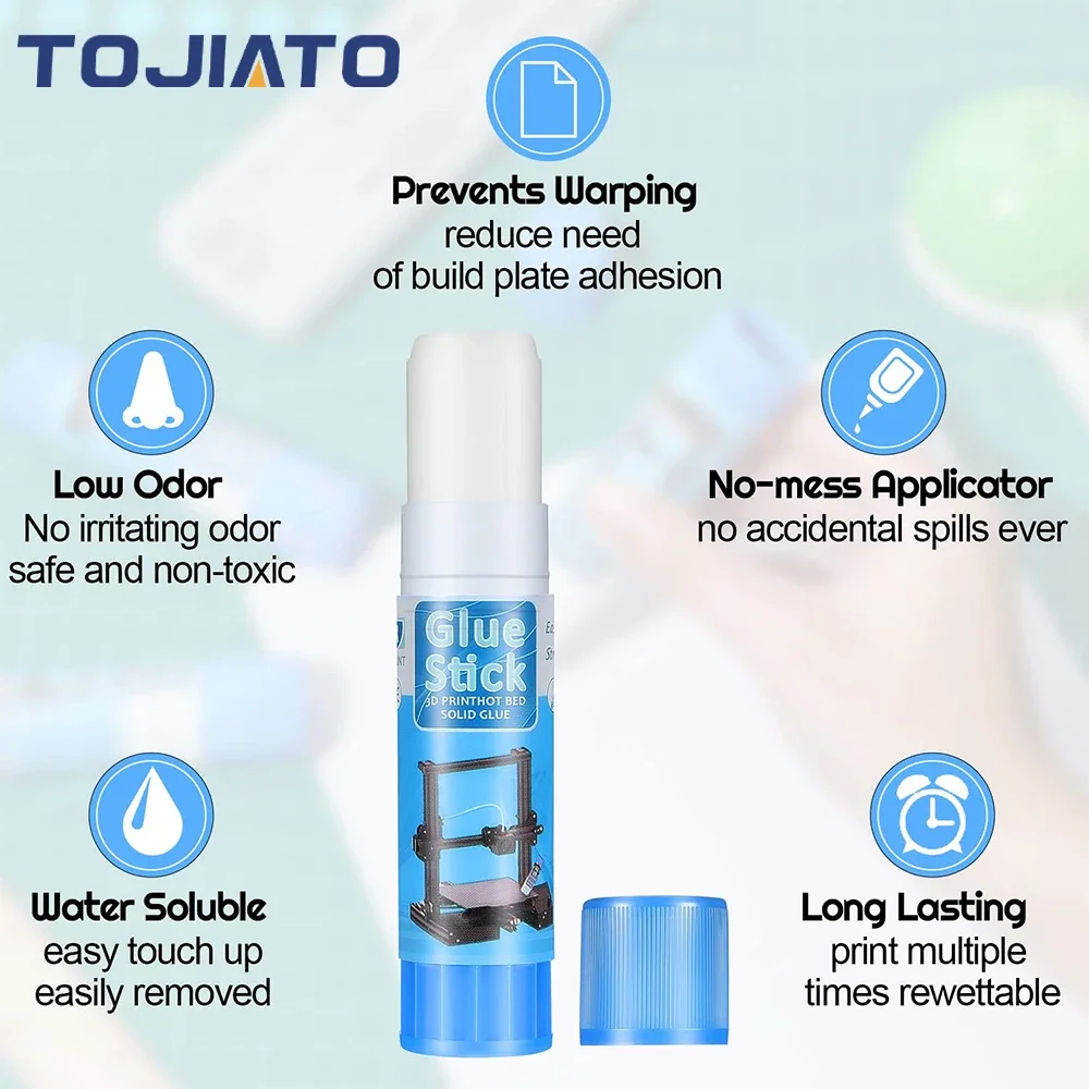 Fácil de usar e limpar: estas varas de cola sólida PVP podem ser facilmente aplicadas com objetos planos ou retos, como régua, cartão de identificação, placa de vidro e assim por diante, apenas aplique levemente a colagem à área da cama de impressão que está sendo aplicada, somente na área de impressão eficaz, Não há necessidade de cobrir toda a superfície; A placa de construção da impressora 3D é facilmente limpa com água após o resfriamento