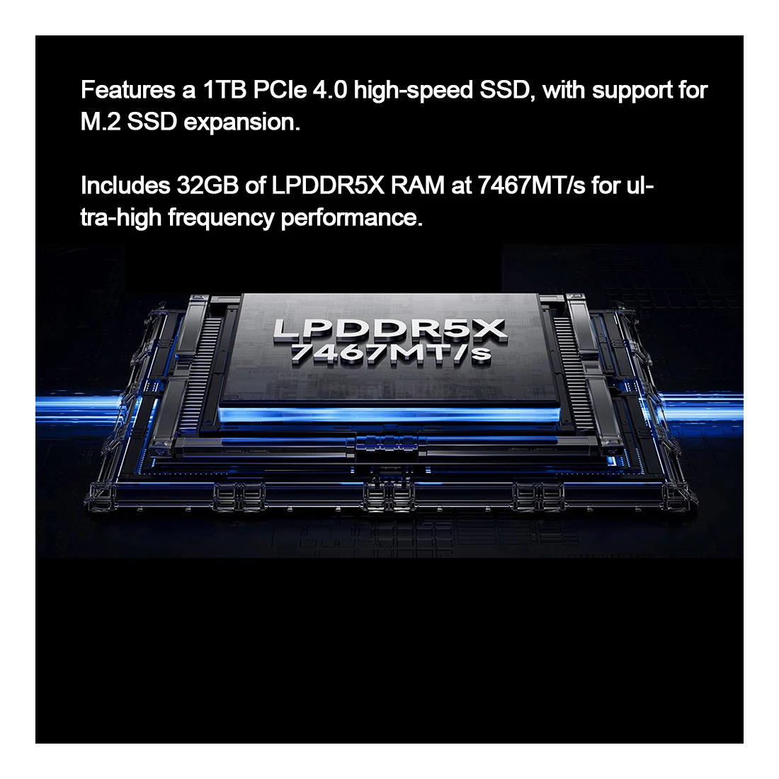 Toda a série vem como padrão com RAM LPDDR5X em alta frequência de 7467MT/s, melhorando significativamente as capacidades de processamento de dados.Isso resulta em maior largura de banda e menor latência, não apenas melhorando os gráficos do jogo e os tempos de resposta operacional, mas também aumentando significativamente a eficiência em tarefas de escritório orientadas por IA.