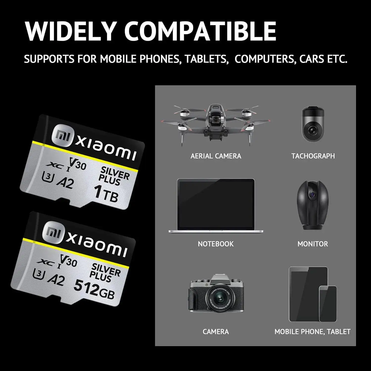 Xiaomi ultra micro mini cartão sd 1db 512gb cartão de memória 128gb 256gb a2 u3 v30 tf cartão flash para telefone computador
