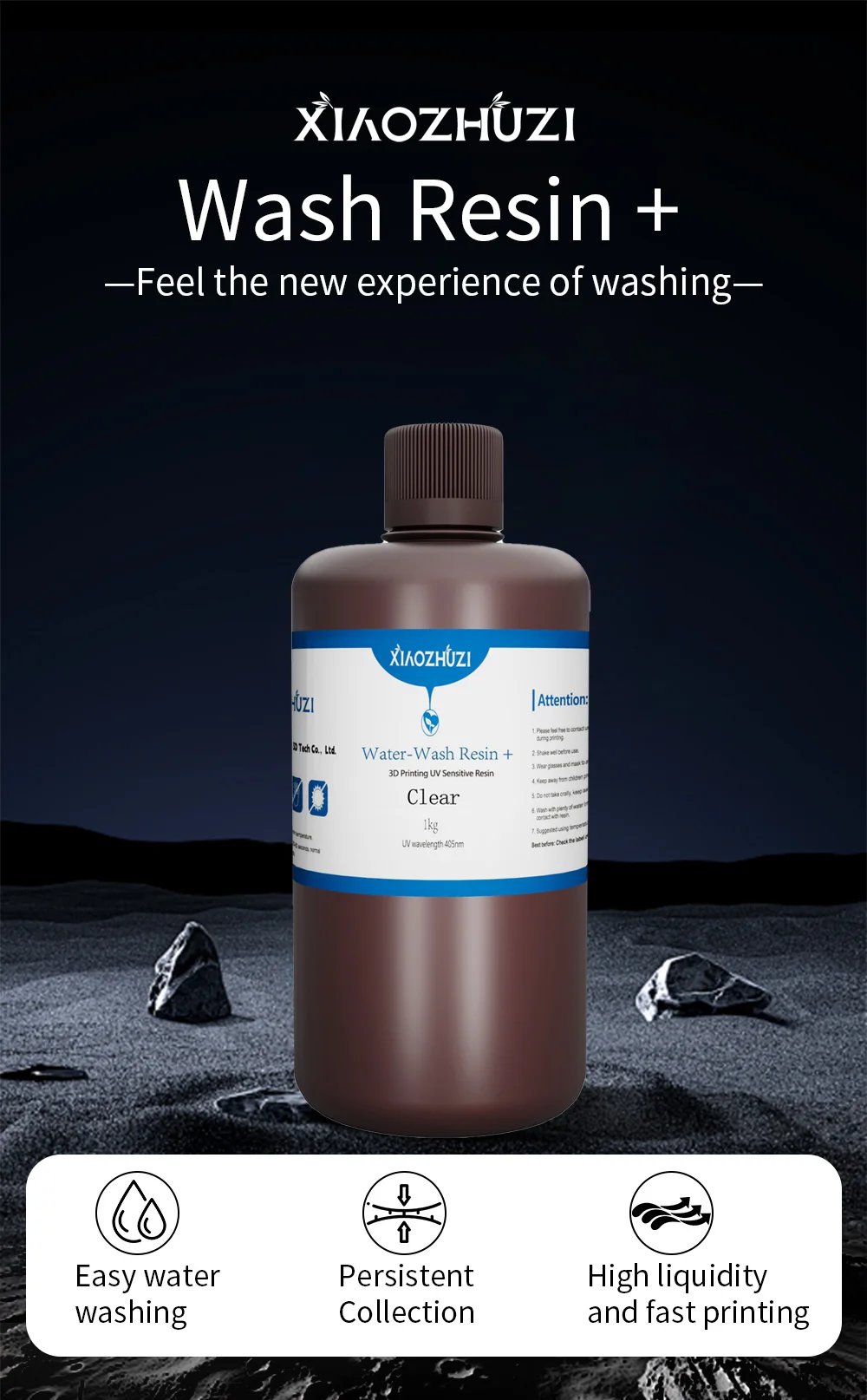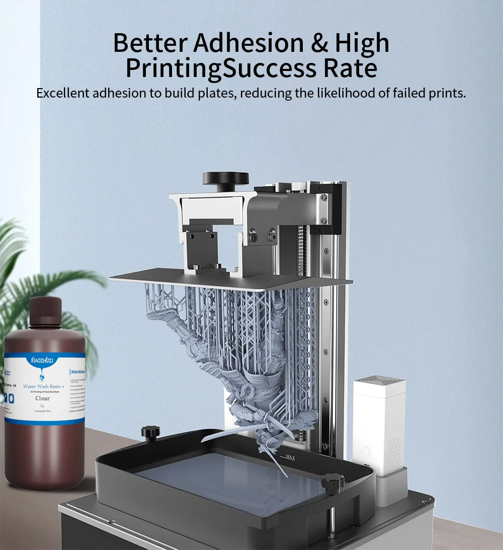 XiaoZhuzi Resina de Impressão 3D Lavável à Água 405 UV LED Baixo Odor Fotopolímero de Cura Rápida de Alta Precisão para Impressora LCD 3D
