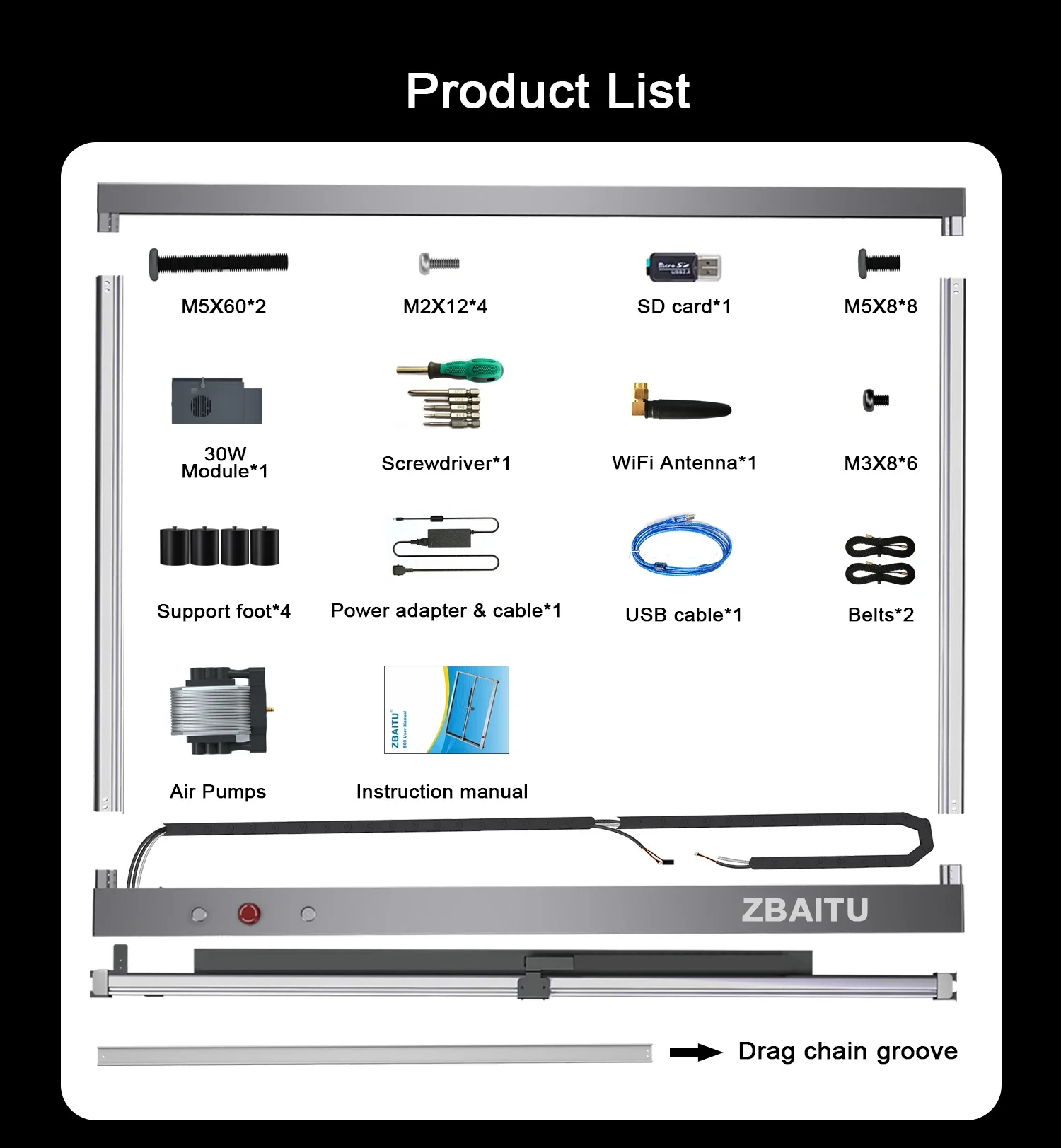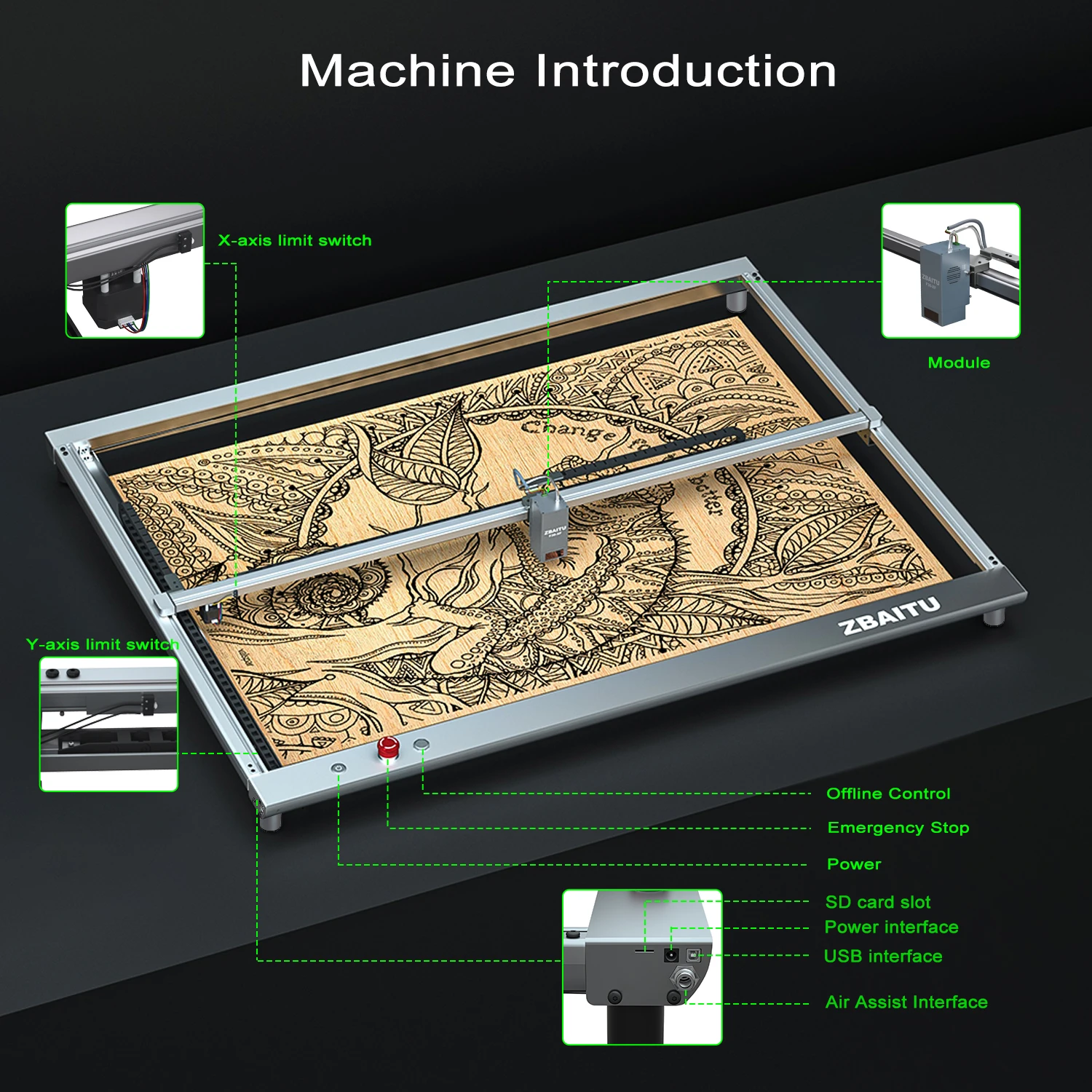 90% das peças já estão pré-montadas, basta combinar os eixos X e Y juntos, em seguida, usar a máquina a laser perfeita.