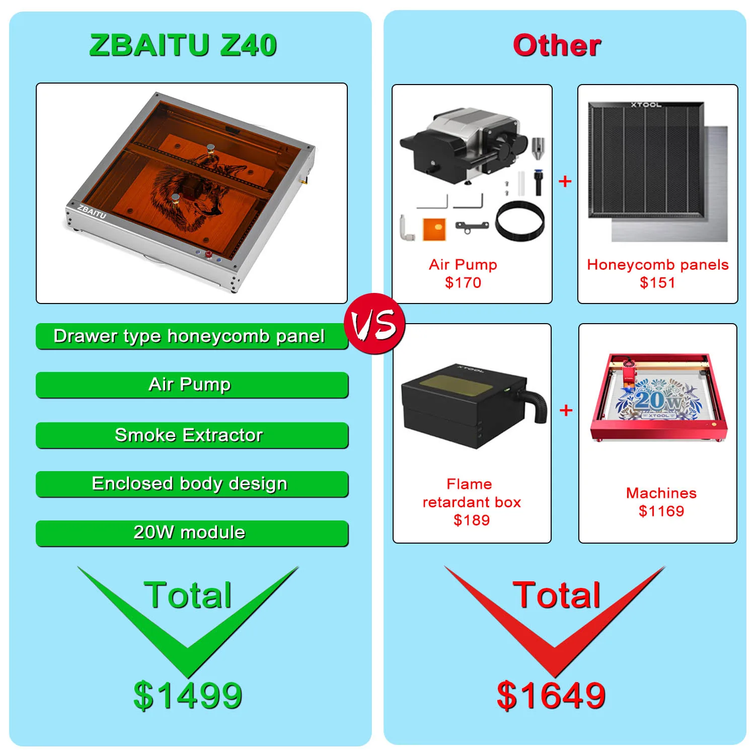 Gravador a laser ZBAITU Z40 Power 130W com módulo laser assistido por ar 20W Máquina de corte e gravação a laser tudo em um
