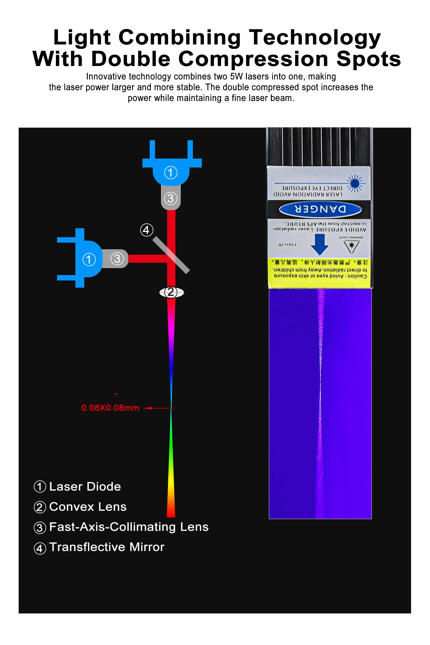 Grande Máquina De Gravura Do Laser/Máquina De Gravura/Ferramentas De Corte De Marcação De Madeira Tecnologia Laser FAC Avançada O ponto comprimido FAC é uma tecnologia totalmente nova. O ponto do foco do laser é 0.08X0.08mm, faz o gravador do laser mais poderoso e preciso. Com 80W Máquina Power-10W Potência De Saída Do Módulo Laser. Pode cortar madeira de 8mm de espessura e acrílico escuro em uma única passagem, a velocidade de gravação pode ser tão alta quanto 9600 mm/min.