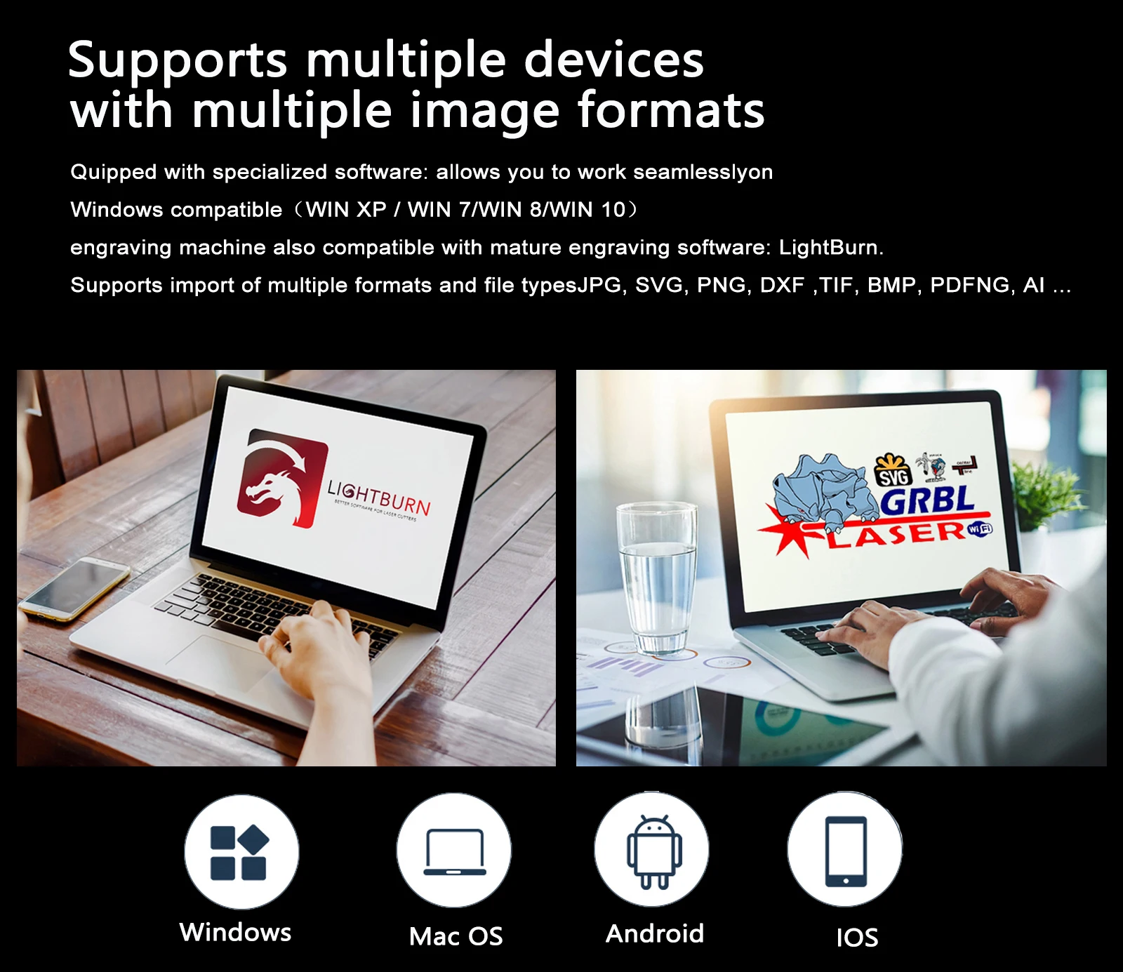 - Engraving Cutting: For Wood/Leather/Metal/Acrylic