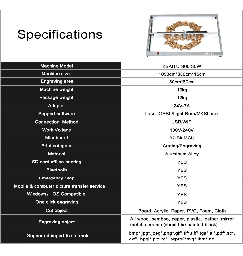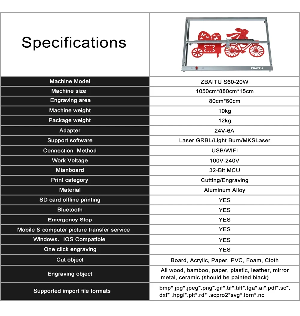 - Número do modelo: ZBAITU 130W Laser Engraver