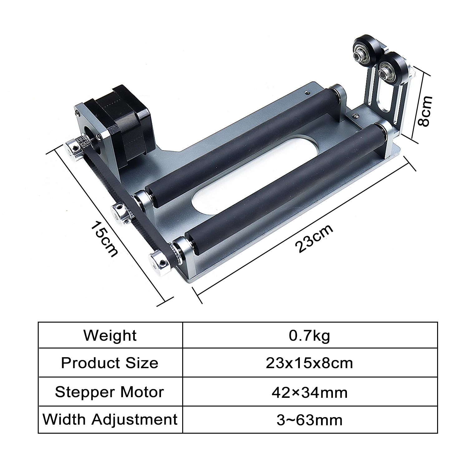 Turns your Laser Engraver to a rotating engraving machine, perfect for engraving cylinder objects, cans, pens, balls and other engravable columns.